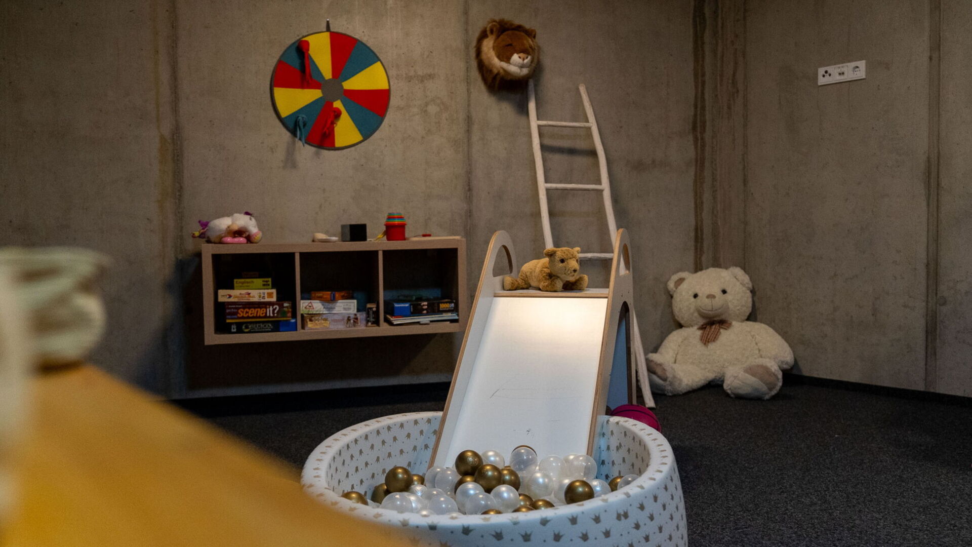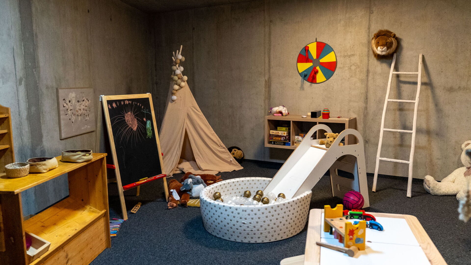 Hier wartet Spaß pur auf die kleinen Gäste: Im Monkey Playground können Kinder toben, malen, bauen und einfach Kind sein. Ob bei Regen oder Sonnenschein – das Spielzimmer bietet Platz für Fantasie, Bewegung und gemeinsame Abenteuer.