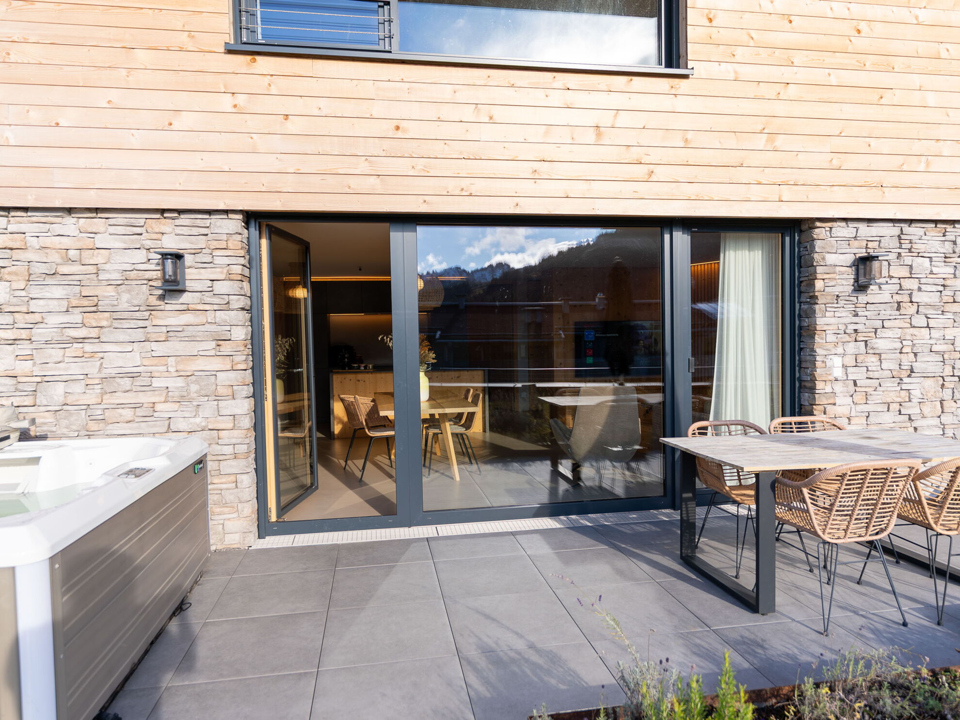 Die großzügige Südterrasse mit eigenem Garten ist euer privates Outdoor-Paradies – mit Blick auf die Berge, Sonne von früh bis spät und genug Platz für Frühstück, Dinner oder einfach nur Seele baumeln lassen.