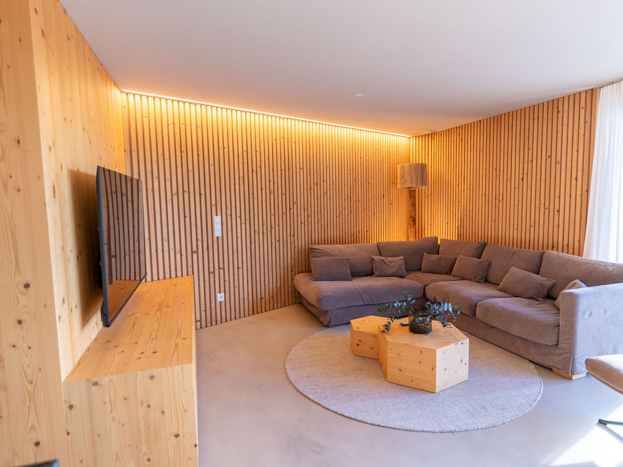 Für den entspannten Abend sorgen ein 65-Zoll-HD-TV, Netflix, und ein Teufel Soundsystem, das euren Lieblingssound in jeden Winkel bringt. Und das Sofa? Kein Schlafsofa, sondern ein echtes Statement in Sachen Komfort.